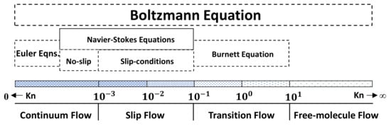 - Knudsen, M. Die Gesetze der Molekularströmung und der inneren Reibungsströmung der Gase durch Röhren. Ann. Der Phys. 1909, 333, 75–130. [Google Scholar] [CrossRef] [Green Version]