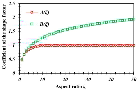 The shape factors A(ξ) and B(ξ) with different aspect ratios.