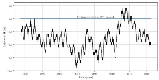 The time series of the daily mean level are shown in Figure 2 where the values are referred to the hydrometric zero value (=257.1 m a.s.l.) that has been reached only in the early nineties and exceeded only from 2014 to 2017.