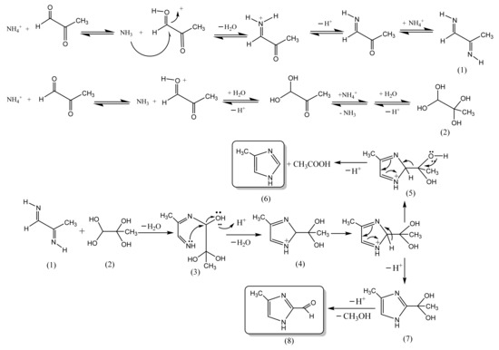 3.3. Formation Mechanism of Imidazole Products