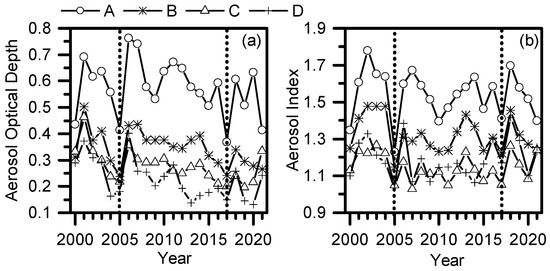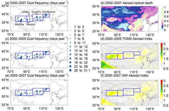 3.3. Variation in Spring AOD and AAI over the East Asian Dust Source Regions