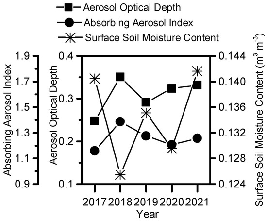 3.5. The Relationship between AOD or AAI and Surface Conditions