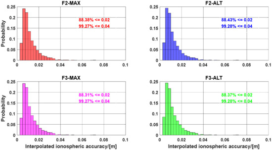 Accuracy distribution of the interpolated slant ionospheric delays derived from the reference stations.