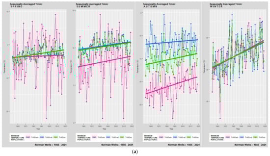 This study examined changes in two aspects of seasonal temperature populations: the change in the number of radiative and advective days, and the change in individual temperature trends. Using the derived mathematical extrema [24] and following examples of similar studies [25,26,27,28], we explored radiative and advective thermal regimes.