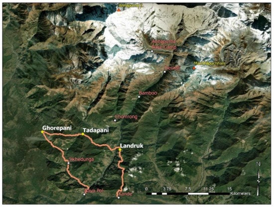 - Michael, A.S.; Smriti, D.; Sanjay, N.; Schuett, M.A.; Dahal, S.; Nepal, S. Local perspectives on benefits of an integrated conservation and development project: The Annapurna conservation area in Nepal. Int. J. Biodivers. Conserv. 2016, 8, 138–146. [Google Scholar] [CrossRef] [Green Version]