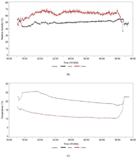 2.2. Indoor and Outdoor PM2.5, Temperature, and Relative Humidity Measurements