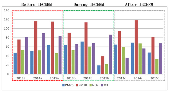 Changes in AQI over the same period from 2013 to 2015 before, during, and after the IECERM.