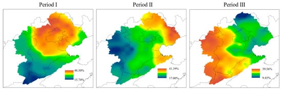 After entering the third period, due to the rapid economic development, the Haihe River basin entered a period of strong human activities [37,38], and the precipitation in the basin showed new characteristics during this period under the dual influence of climate change and human activities. It can be seen that the climate state of the watershed begins to change due to the increasing influence factors of human activities, especially the continuous development of coastal ports, and the impact of this period is more extensive than that of the single climate change period.
