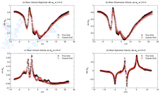 Large-eddy simulation (LES) is a popular approach for studying complicated turbulence problems, particularly in terms of the ability of saving computation cost and improving numerical accuracy [,]. LES was first proposed by Smagorinsky in 1963 as part of a basic general circulation experiment []. The large eddies of turbulence are computed directly and only sub-grid scale motions are modeled in LES, which reduce the computation cost compared to DNS []. In turbulence, the large eddies mostly consist of turbulent energy and play the most significant role in both turbulent mixing and momentum transfer. In any pollutant dispersion problem at both the roof level (buildings) and ground level (vehicles), capturing the eddies from small to large scales are significant for understanding the comprehensive behaviour. Therefore, LES is a better candidate in this regard. The flow through the street canyon is determined by the aspect ratio (AR), which is the ratio of the building height (h) and the street width (w) []. Several works were found in the literature where different flow patterns, geometries, simulation techniques, and AR were reported for the benefit of each project.