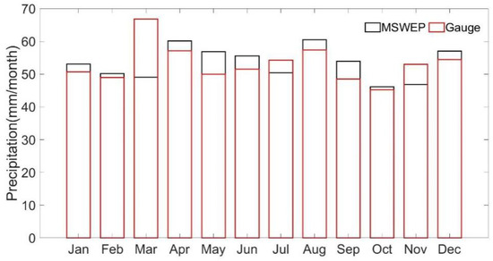 MSWEP was produced by integrating ground site data, satellite data, and reanalysis data. As a global precipitation product, MSWEP has a temporal resolution of 3 h and a spatial resolution of 0.1 degrees. At present, MSWEP has been upgraded to the second version, namely MSWEP V2. When compared with MSWEP V1, MSWEP V2 introduces cumulative distribution function and precipitation frequency correction, and the accuracy of data is significantly improved [45]. This study uses version 2.8 of MSWEP. This version has the following advantages: (1) new data source; (2) improved weight diagram; (3) less estimation of peak precipitation; (4) longer data records; (5) near-real-time estimation; and (6) compatibility with multi-weather. Previous studies have found that in some areas, the accuracy of MSWEP data is higher than that of other SPPs [19,24,26,46]. In this study, monthly-scale MSWEP data from 1981 to 2020 were downloaded from the official website (http://www.gloh2o.org/mswep/ (accessed on 1 July 2021)).