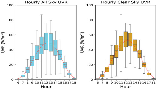 In order to understand how the UVR varies without the influence of clouds, the hours corresponding to the clear sky condition were analyzed as well as the hours in all sky conditions.