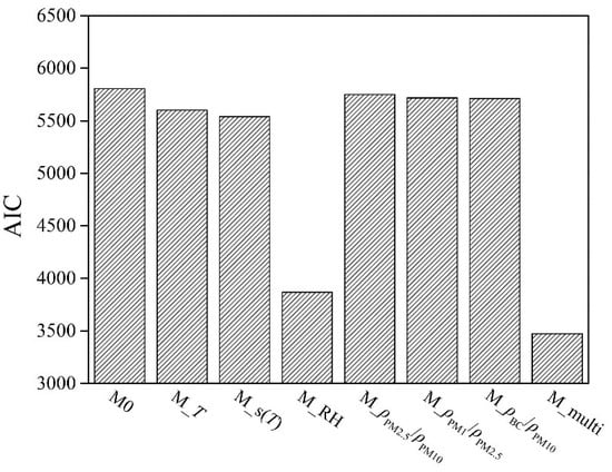 The AIC value of multiple models for the time series of aerosol extinction coefficient per unit of mass (M_multi: model with multi-influencing factors).