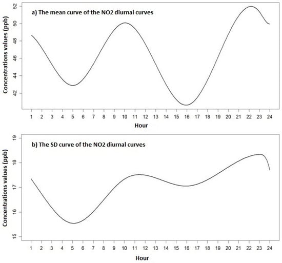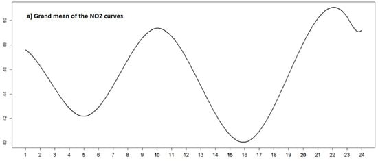 where . We used the splines as the underlying set of basis functions to estimate functional data (i.e., diurnal curves of concentrations) from the discrete annual means of hourly concentrations in each station [,].