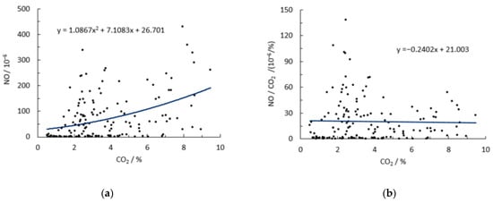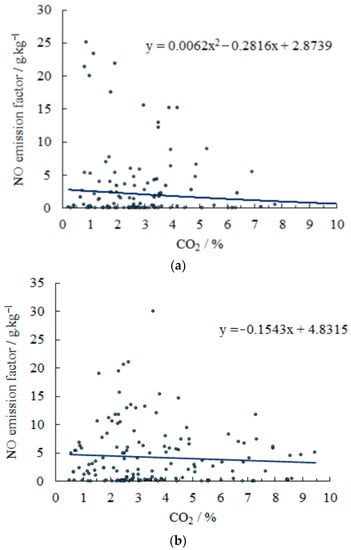 - Compared with the CO2 emission concentrations, the NO emission concentrations were very low after dilution, and lower concentrations cause greater measurement errors.