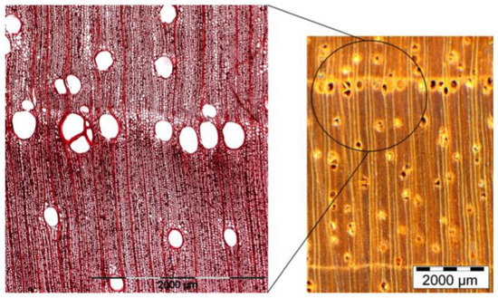 Microsection (left) and tree-ring boundaries (right) of C. odorata.