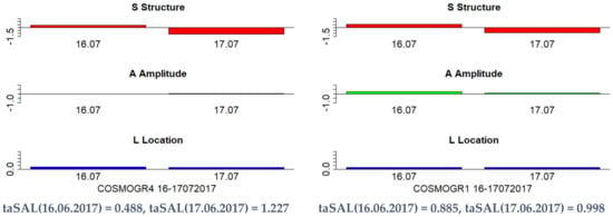 SAL component diagrams for the period 16–17 July 2017 for COSMOGR4 (left) and COSMOGR1 (right).
