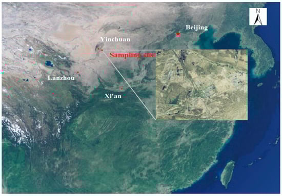 The sampling site (Figure 1) was located in the Linhe Industrial Park of Ningdong Base (106°32′12″ E, 38°13′4″ N); it is surrounded by Hengshan Road and Chaoyang Road, which have a lot of traffic flow in the morning and evening rush hours. To the north is the Ningxia Baofeng Energy Zone, to the southwest is the Ningdong Aluminum Branch of Qingtongxia Aluminum, and to the southeast is Ningxia Jingneng Ningdong Power Generation.