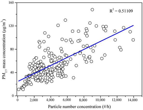 Correlation between the number concentration of ambient particles collected using a SPAMS and PM2.5 mass concentration.