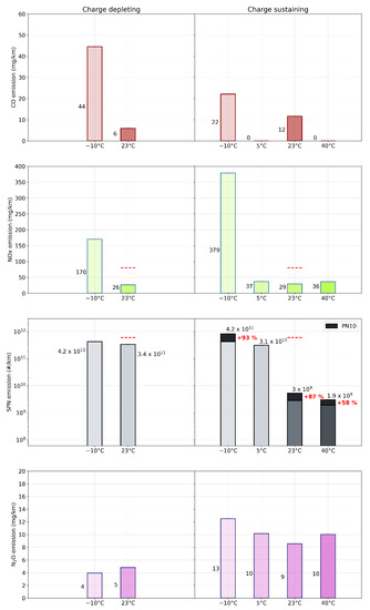 - Pham, A.; Jeftic, M. Characterization of Gaseous Emissions from Blended Plug-In Hybrid Electric Vehicles during High-Power Cold-Starts. SAE Technical Paper 2018-01-0428. 2018. Available online: https://saemobilus.sae.org/content/2018-01-0428/ (accessed on 26 May 2022). [CrossRef]