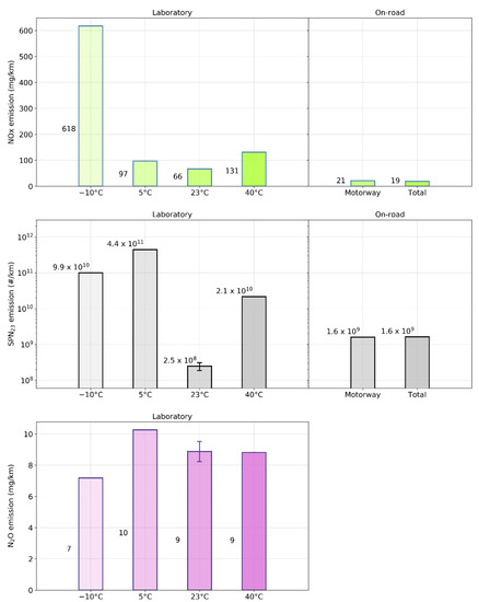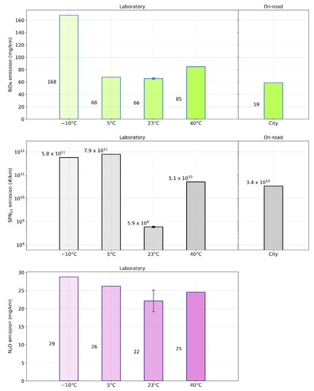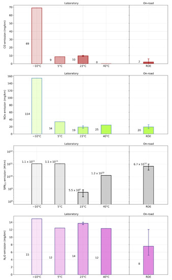 - Weber, C.; Sundvor, I.; Figenbaum, E. Comparison of Regulated Emission Factors of Euro 6 LDV in Nordic Temperatures and Cold Start Conditions: Diesel- and Gasoline Direct-Injection. Atmos. Environ. 2019, 206, 208–217. [Google Scholar] [CrossRef]