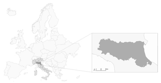 - Regione Emilia-Romagna Statistica. Available online: https://statistica.regione.emilia-romagna.it/ (accessed on 16 April 2022).