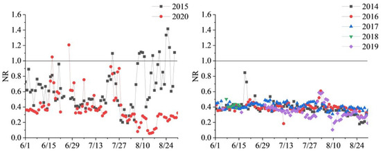 Changes in the neutralization ratio (NR) during the summers of 2014–2020.