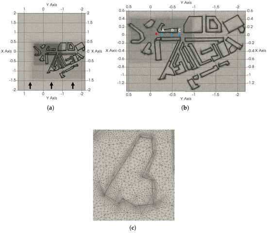 Overall, these results, together with previous Fluidity evaluation studies [,,], were deemed acceptable for our requirements of achieving a realistic turbulent atmospheric airflow and associated in-canyon tracer dispersion along London Road.