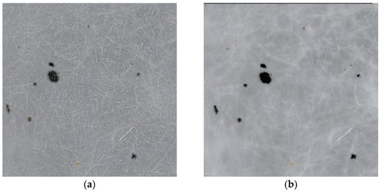 (a) Microscope image of a filter area of the RDE cycle, original; (b) edited image with HDR.