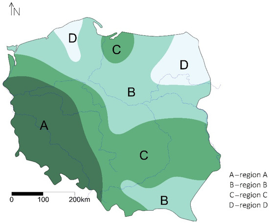 A shift of agroclimatic regions is forecasted in Europe. Ceglar et al. [15] presented a forecast of migration of regions (zones) designated based on growing season length and sum of active temperatures (SAT) for the period between 1975 and 1995. The continental and Pannonian zones are moving northward by almost 70 km per 10 years. The continental zone covers the areas of northeast Poland. The Pannonian zone, characterized by scarce precipitation, among others, increasingly extends over the southwestern part of Poland. The observed changes have already shifted the time of phenological phases of the main crops in Europe [15].