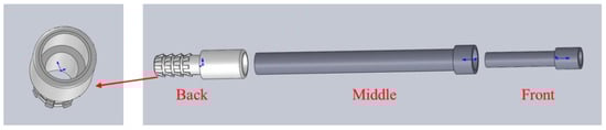 Two types of sampling devices were used, including a foam penetration-filter tube and a cyclone-filter holder. The former was custom-made, with a small deposition area on the filter. The latter is commercially available, which has a larger filter and is more suitable for detecting particles at high concentrations. Both of them are cheap, and the tube or cassette can be discarded or recycled after use. The design of the foam penetration filter tube [31] is shown in Figure 2, and it was manufactured by 3D printing with nylon. The foam penetration-filter tube can be divided into three parts. The front part is filled with a polyurethane foam (8 mm in length, 6.3 mm in diameter, and 50 holes/inch), and the other, polyurethane foam (25 mm in length, 4 mm in diameter, and 90 holes/inch). The former foam is used to remove larger particles and prevent the tube from being blocked, and the latter foam collects particles greater than 2.5 μm in size and ensures only PM2.5 particles pass through. A silver membrane filter (STERLITECH Inc., Auburn, WA, USA) with the diameter of 8 mm is placed tightly between the middle part and the back part. With the drawing of flow pump, PM2.5 passes through the front and the middle parts (55 mm in length and 6.3 mm in diameter), and then deposits uniformly on the filter membrane.