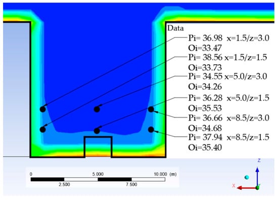 The results of PMARE (%) in different positions are shown in Table 3. As shown in Figure 5, the values with the greatest difference between the simulation and the field are those located in the position X = 5.0 and Z = 1.5, because it is found above the vehicles, with the lowest value being PMARE 15.91, meaning fair.