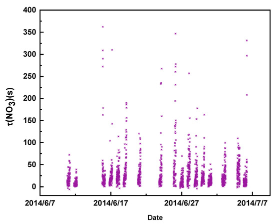 Time series for the NO3 lifetime in Wangdu County, Hebei Province, from 10 June to 6 July.