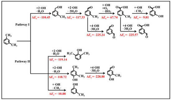 Proposed H-abstraction and OH-addition oxidation pathways of m-xylene. (Reprinted with permission from Ref. [115]. Copyright 2020, Elsevier Inc.).