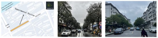 The final selected experimental site is Xilin Street (the third area of Country Garden); the street valley is connected to Tanxi Villa in the east and Zhejiang Agriculture and Forestry Affiliated Primary School in the north. The spatial forms of buildings and roads on both sides of the valley are continuous and relatively regular, which was convenient for field measurement and simulation verification in the subsequent analysis.