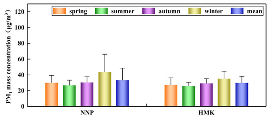 3.1. Seasonal Variation of PM1 Mass Concentrations