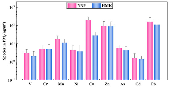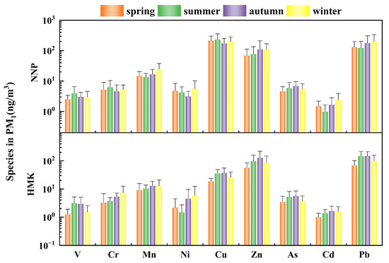- Wang, K.; Wang, W.Y.; Li, L.L.; Li, J.J.; Wei, L.L.; Chi, W.Q.; Hong, L.J.; Zhao, Q.L.; Jiang, J.Q. Seasonal concentration distribution of PM1.0 and PM2.5 and a risk assessment of bound trace metals in Harbin, China: Effect of the species distribution of heavy metals and heat supply. Sci Rep. 2020, 10, 8160. [Google Scholar] [CrossRef]