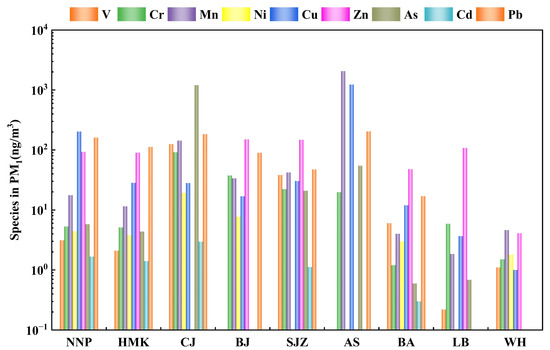 - Wu, L.C.; Luo, X.S.; Li, H.B.; Cang, L.; Yang, J.; Yang, J.L.; Zhao, Z.; Tang, M.W. Seasonal Levels, Sources, and Health Risks of Heavy Metals in Atmospheric PM2.5 from Four Functional Areas of Nanjing City, Eastern China. Atmosphere 2019, 10, 419. [Google Scholar] [CrossRef]