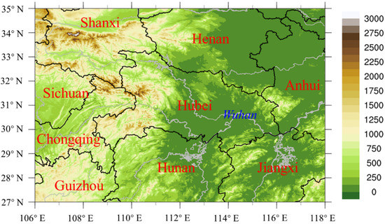 Hubei Province is located in Central China, with mountainous areas in the west and plain areas in the middle and east (Figure 1). Under the influence of the Qingha–Tibet Plateau, North China Plain and the oceans of eastern and southern China, Central China is often affected by the westerly trough and WPSH, resulting in complex and diverse weather conditions that cause thunderstorms gales. Based on the method of Fang et al. [10] and Yang et al. [17], this study classifies the weather situations of 235 thunderstorm gale samples by similarity, and divided them into four types according to the weather situations of thunderstorm gale in Hubei Province, namely in the rear of trough type (REA_T, 24 samples), in front of trough type (FRO_T, 124 samples), in the periphery of the WPSH type (PER_W, 60 samples) and easterly airflow type (EAS_A, 27 samples). According to the weather situation, the physical quantities [19,31] associated with dynamic conditions, water vapor, atmospheric instability and temperature stratification are calculated by the NCEP reanalysis data. The specific physical quantities are shown in Table 1. The values of physical quantities under different weather types are selected according to the proximity principle and the closest time before the occurrence of thunderstorm gales.
