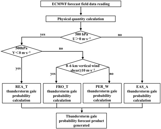 Flow chart of thunderstorm gale probability forecast based on objective classification.