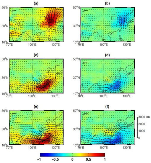 For the PNA (Figure 9c), the precursor signal is obvious in South China. The signal is more lagging in North China. The Yangtze River valley is almost synchronous.