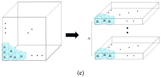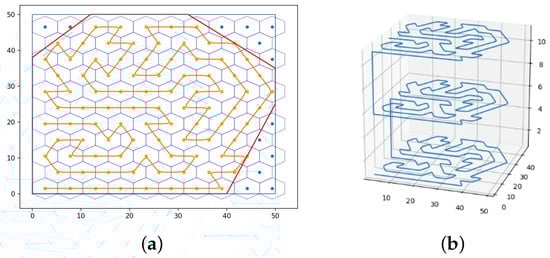 CPPs can be divided into two categories [13] according to the way the regions are decomposed. One type is called grid-based decomposition, which discretizes the coverage area into a grid and then plans a path to visit each grid cell. Another type is called cell decomposition, which divides the coverage area into different units as needed. These units are then overlaid with a zig-zag flight, and finally the traveling salesman problem on adjacent decomposition units is solved to determine the sequence of access units. Methods based on grid decomposition include a spiral spanning tree [14], a wavefront algorithm based on distance transforms and an adaptive D* path planning method [15]. These methods decompose the area that needs to be covered into grid cells, such as triangles, squares [16], and hexagons, and then sample these grid cells. This paper uses this idea; the difference is that we use the hexagonal prism as the basic unit, and then use the center of the unit as the sampling point, so as to collect data samples with balanced spatial distribution in the entire study area, rather than only the data of a certain height plane. When planning access paths for grid cells, the traveling salesman problem (TSP) [17] is widely used by directly connecting all target locations. It finds the path by visiting each location exactly once, and provides the shortest path for mobile awareness. Jimenez [18] proposed a genetic algorithm with path templates to obtain paths. Of course, there are other methods. Nam [19] obtained the coverage path according to the region of interest marked by the wavefront and proposed a task execution time optimization criterion based on the length of the path. There are many CPP methods based on cell decomposition, such as boustrophedon decomposition [20], Morse decomposition [21], lawn mower path [22] and its variants [23]. Boustrophedon cell decomposition solves the problem of covered areas with known obstacles by decomposing the target area under the obstacle location and then finding the least costly route through all areas [24]. Yildirim [25] proposed an improved cell decomposition algorithm to improve the complete coverage efficiency of autonomous environmental monitoring systems. Bahnemann [26] optimized Boustrophedon coverage by using several scanning methods and combining them according to the required transition motion between obstacles and cells, and some extensions of the algorithm also took sensor feedback into account [27].