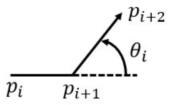 where S is the path length, determined by the Formula (4), is the steering angle from the i waypoint to the waypoint turning to the waypoint, as shown in Figure 2.