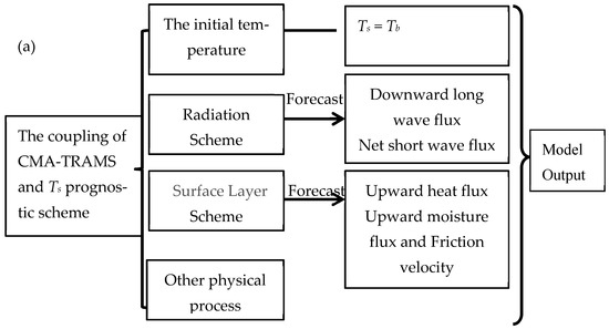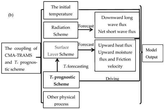 The diagram of the uncoupling (a) and coupling (b) between CMA-TRAMS and prognostic scheme.