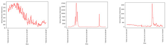 - Lucas, G.M.; Thayer, J.P.; Deierling, W. Statistical analysis of spatial and temporal variations in atmospheric electric fields from a regional array of field mills. J. Geophys. Res. Atmos. 2017, 122, 1158–1174. [Google Scholar] [CrossRef]