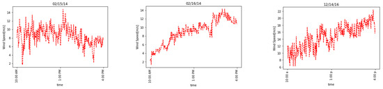 Only 3 days (1, 2, 13) out of the 22 were found with higher wind speed values that were greater than the 8 m s−1 maximum value of fair-weather condition criteria [14] (the values were 2–14 or 6–20 m s−1). Figure 5 shows the 3 case studies and the effect of the wind speed on the PG. During case study 2 (16 February 2014) and case study 13 (14 December 2016) there were transient periods of high PG values, which appear as peaks in the record. Data from the IMS and local weather stations in Sde-Boker and Mitzpe Ramon indicates that a short period of light rain (up to 4.2 mm/h) was present during case study 2 and (up to ~2 mm/h) during case study 13. Overall, the higher wind speed values did not affect the mean pattern of PG behavior. During case study 1, the PG decreased and during case studies 2 and 13, the PG mean value was quite low compared with fair weather values (~154 and ~195 V m−1 respectively) except for the short duration episode of rain. The effect of heavy rain on the Potential Gradient has been discussed by [8] and shown to decrease considerably and reverse the polarity exhibiting a large variability.