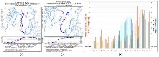 - Stein, A.F.; Draxler, R.R.; Rolph, G.D.; Stunder, B.J.B.; Cohen, M.D.; Ngan, F. NOAA’s HYSPLIT atmospheric transport and dispersion modeling system. Bull. Amer. Meteor. Soc. 2015, 96, 2059–2077. [Google Scholar] [CrossRef]