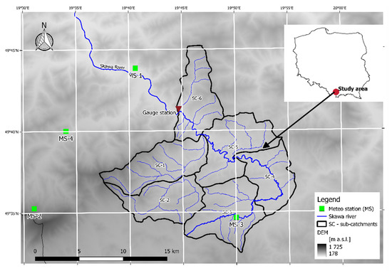 The case study of the upper Skawa catchment, due to its characteristics (relatively small area, mountainous character, quick response time, and a limited number of rain gauges), is representative of similar study areas in Slovakia and the Czech Republic, as well as other parts of Europe.