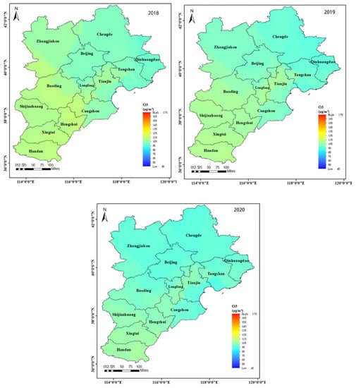 Distribution of O3_8h concentration from 2018 to 2020 in Jing-Jin-Ji region in China.