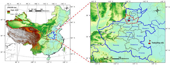 Multi-size airborne particles (PM10, PM2.5 and PM1) sampling was simultaneously conducted from 21 December 2019 to 17 January 2020 on the roof of the South Building of Chemistry in Henan Normal University (113.91° E, 35.33° N, 72 m a.s.l) at a height of approximately 20 m from the ground (Figure 1). The location of the sampling site was surrounded by residential zones, commercial areas, and without a nearby industrial source, which represented a typical urban site in the central zone of Xinxiang. Xinxiang is a typical industrial city, and the consumption of coal and nitrogenous fertilizer, pollutants and other characteristics are summarized in Table S2. The samples of PM were simultaneously collected on 90 mm quartz membrane filters (Pallflex TissuquartzTM, Pall Corporation, Port Washington, NY, USA) every day from 9:00 a.m. to 8:00 a.m. of the next day (23 h) using TH–150F medium volume air particulate matter samplers (Wuhan Tianhong Instruments Co., Ltd., Wuhan, China) at a flow rate of 100 L min−1, according to the sampling methodology of previous studies [2,24] and technical specification (HJ 656–2013). During the entire sampling campaign, a total of 82 effective samples loaded with PM were obtained (28, 27 and 27 samples were collected for PM10, PM2.5 and PM1, respectively). In addition, six field blanks at each site were analyzed in the same way to evaluate the background value. Strict quality assurance and quality control (QA/QC) procedures were performed to ensure the collection of reliable data.