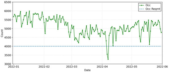 TGRS neutral atmosphere occultations per day passing QC in 2022.